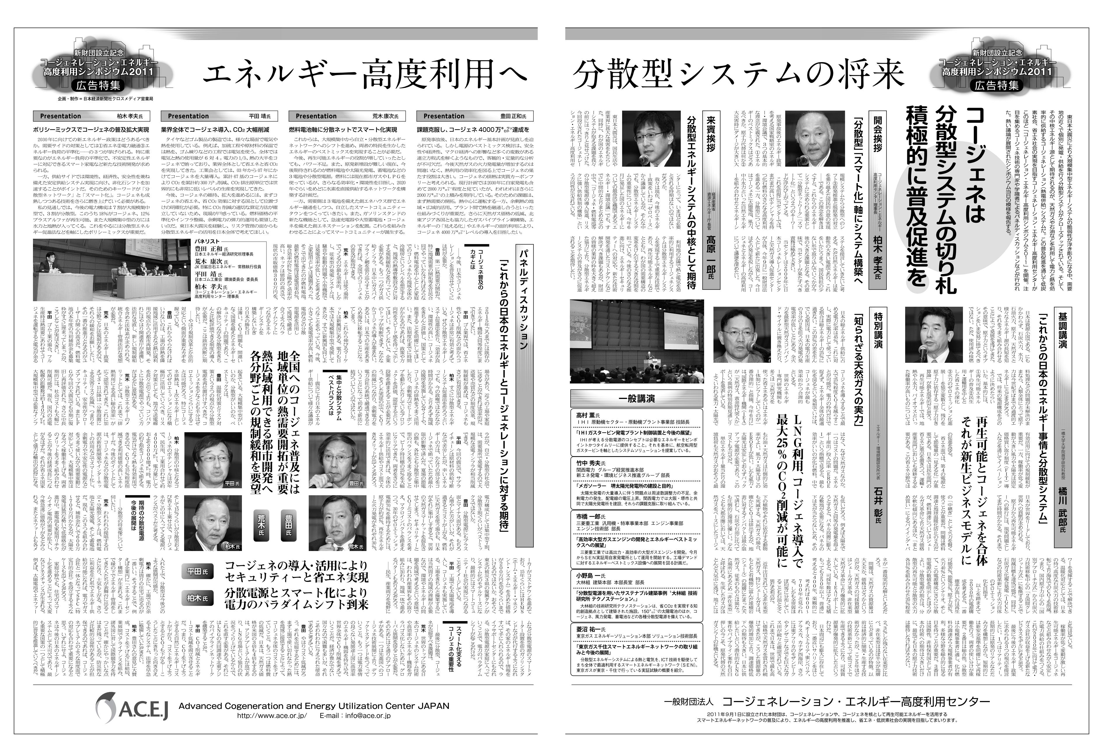- コージェネレーション・エネルギー高度利用シンポジウム2011(11月24日)の新聞広告について